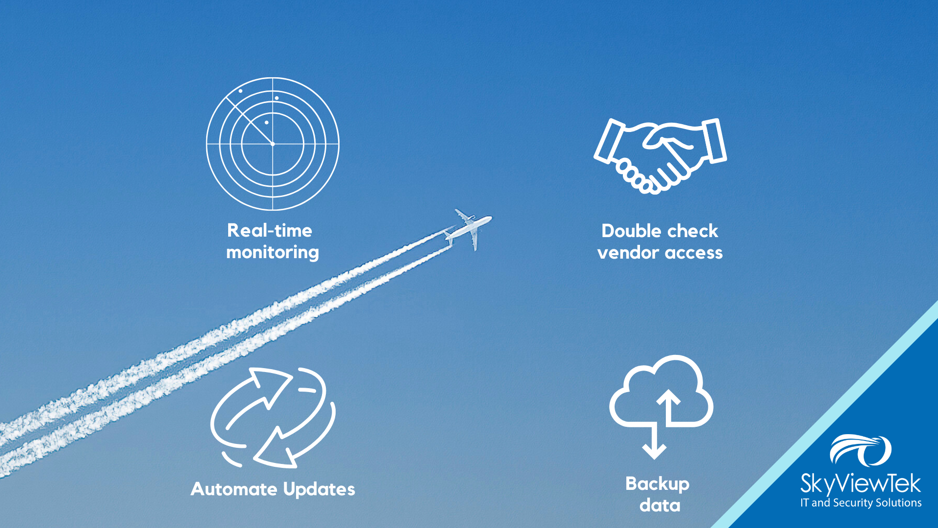 The next level of prevention is about making these steps part of your routine and SkyViewTek is here to help you map it all out. For practical advice, reach out to Bernie Orglmeister at support@skyviewtek.com or call 610-590-5006.